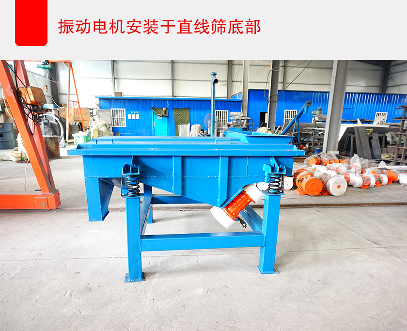 當然,也可以通過減少直線篩的篩框等整體寬度來解決這個問題,但這樣會造成設備的有效篩分面積減少,導致處理量變小,影響篩分效率、生產(chǎn)進度,所以可以選擇將振動電機安裝在設備的底部,以此來減少直線篩的整體寬度,這樣即保證了設備的有效篩分面積,不影響處理量和篩分效率,也大大減小了直線篩設備的整體寬度。