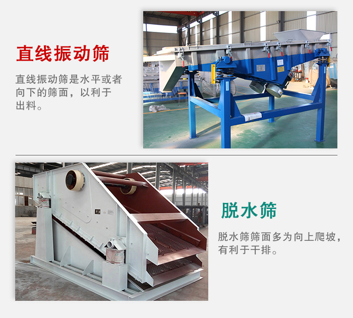 脫水篩篩面多為向上爬坡,有利于干排;直線振動篩是水平或者向下的篩面,以利于出料。