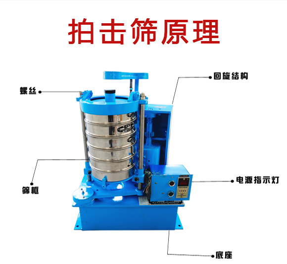 拍擊篩:拍擊篩 電機(jī)通過(guò)同步帶,帶動(dòng)齒輪變速后使主軸轉(zhuǎn)動(dòng),主軸帶動(dòng)偏心輪使滑板帶動(dòng)試驗(yàn)篩左右搖動(dòng),同時(shí)帶動(dòng)頂桿齒輪轉(zhuǎn)動(dòng),頂擊拍錘,拍擊試驗(yàn)篩,使試驗(yàn)篩、分樣篩中的物料篩分。