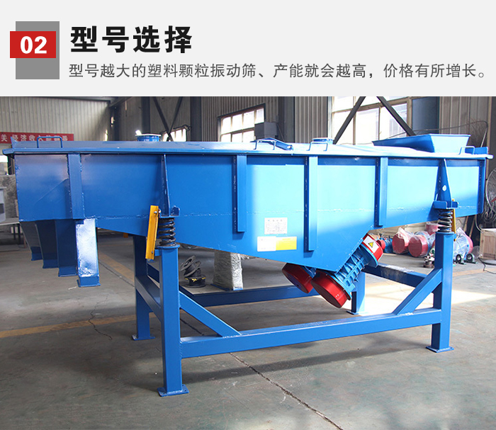 2、型號選擇:各種塑料顆粒振動篩型號多樣,型號越大的塑料顆粒振動篩、產(chǎn)能就會越高,相應(yīng)的價(jià)格也會有所增長。