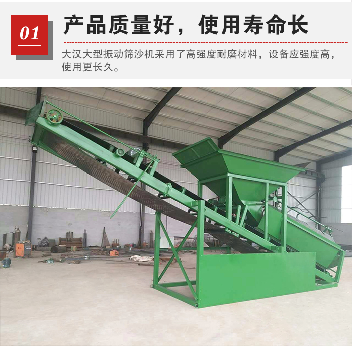 大型振動(dòng)篩沙機(jī)是用于河道,水庫(kù),煤場(chǎng)的沙石分離設(shè)備,大型振動(dòng)篩沙機(jī)多少錢一臺(tái)?這里以新鄉(xiāng)大漢公司為例。