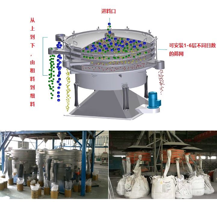 圓形搖擺篩采用仿人工篩分原理,用于準(zhǔn)確分離1-6級粉粒,通常用于干燥、粉狀、顆粒狀產(chǎn)品的篩分、分級和除塵,特別適用于細、脆、輕等難于篩分的產(chǎn)品。