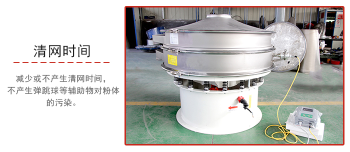 改善低密度粉在重力沉降中的平降(粉末與網口輕接觸)滑移效應,改善高密度金屬在網口滯留或楔入,改善帶靜電粉體的粘附效應,從而提高篩分效率和篩分質量。用篩分通過率表示,一般情況下比普通旋振篩增加通過率50%-400%。